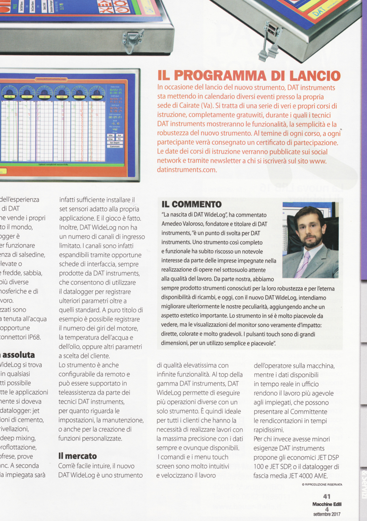 Amedeo Valoroso: Interview published in the magazine Macchine Edili, year 2017, issue 4. Interview published on Macchine Edili magazine, year 2017, issue 4.